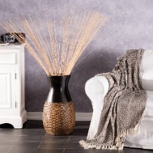 Kugelförmige Hängeleuchte Manuela, Holzgeflecht